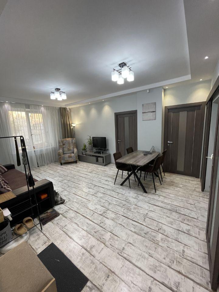 В квартире сделан современный евроремонт. Каждая комната обставлена мебелью, а на кухне и в комнате есть всё необходимое для комфортного проживания. Ванная комната оборудована ванной, что позволит вам расслабиться после насыщенного дня. Из техники в вашем распоряжении кондиционер, холодильник, телевизор и стиральная машина.