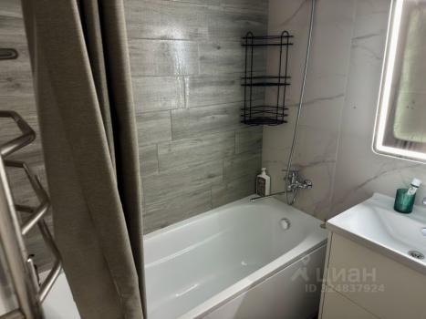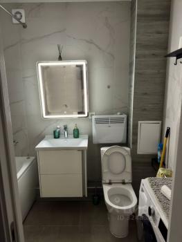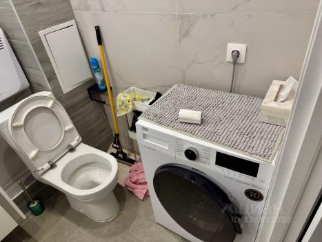 В ванной комнате установлена стиральная машина и совмещённый санузел с качественной сантехникой.