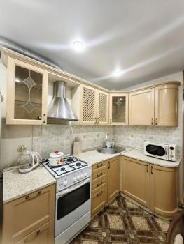 Квартира со свежим косметическим ремонтом. Комната и кухня оборудована современной мебелью: гостиной, двумя диванами, новым кухонным гарнитуром, кухонным уголком, обеденным столом и стульями.